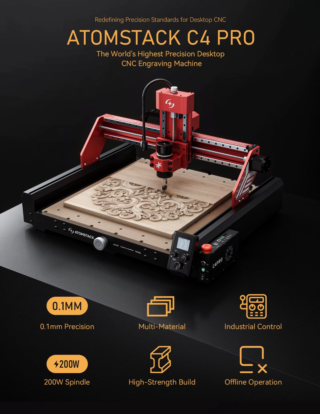 Frézka AtomStack C4 Pro byla navržena s důrazem na snadné používání a nekompromisní přesnost.