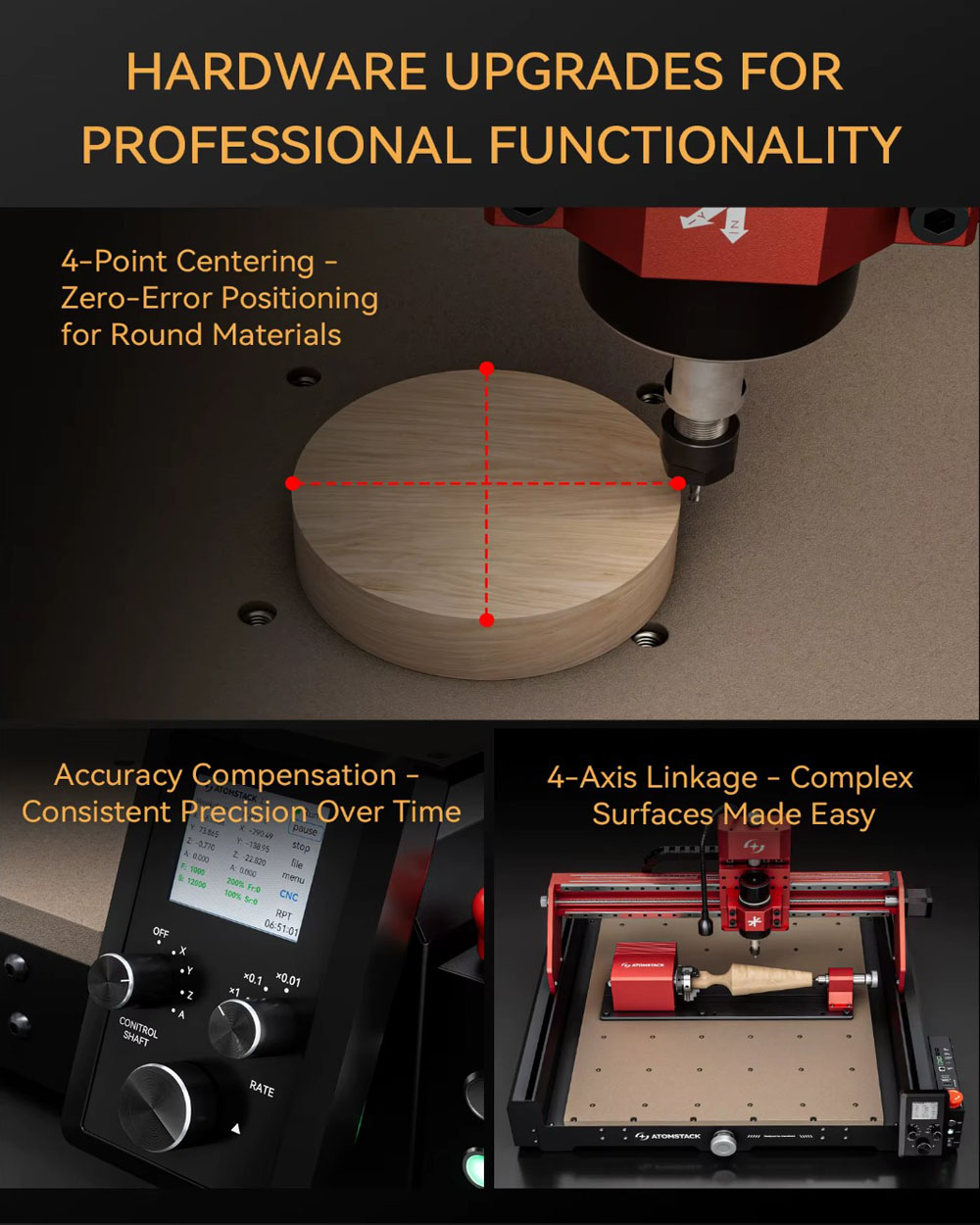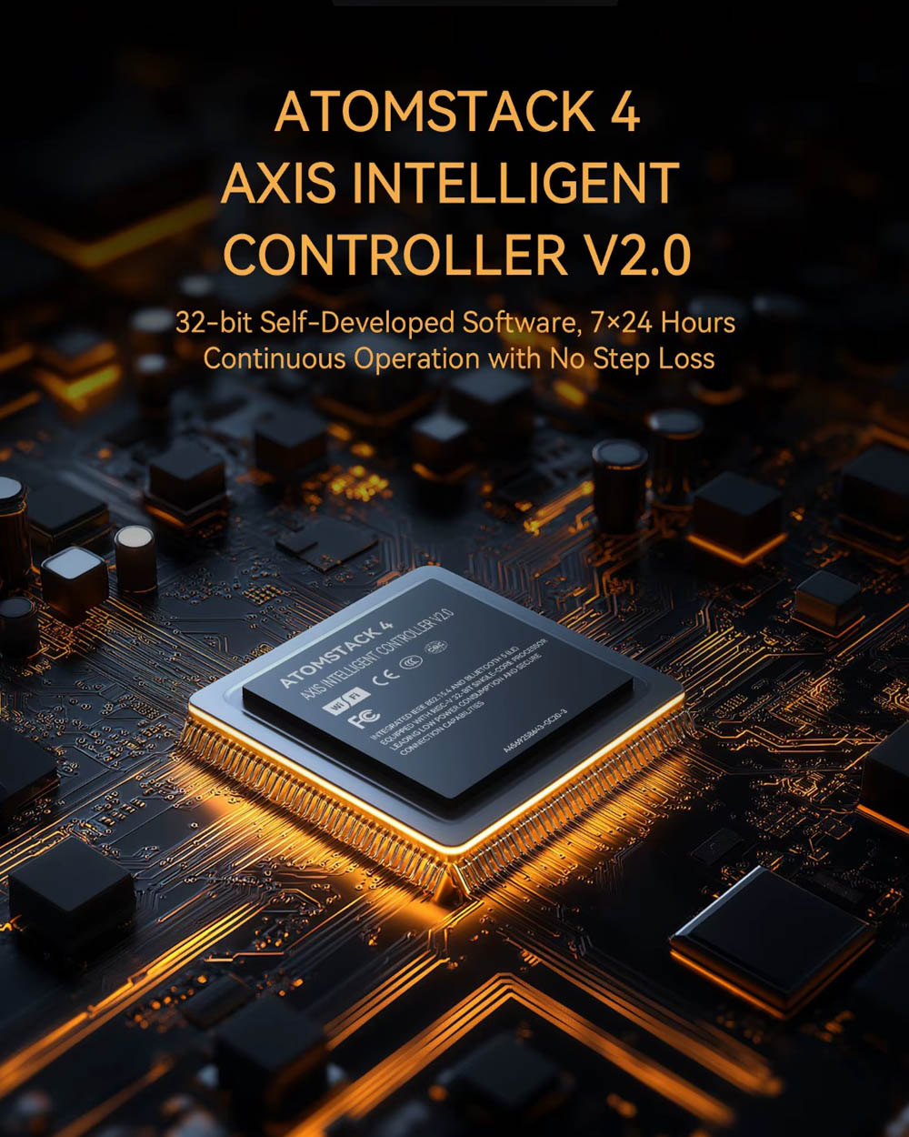 Řídicí jednotka: ATOMSTACK 4AXIS INTELLIGENT CONTROLLER V1.0 (verze V2.0) je vybavena řadou profesionálních funkcí, které byly dosud dostupné pouze u průmyslových strojů. To výrazně zvyšuje komfort a efektivitu práce.