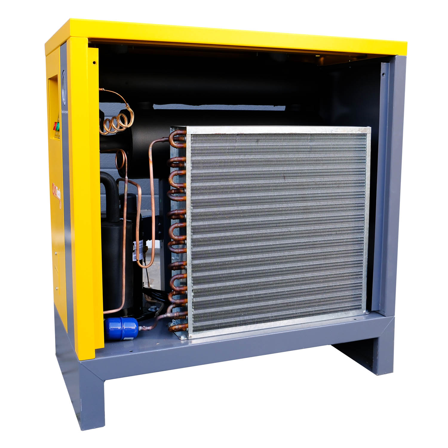 Použití vysoce účinného odpařovacího systému umožňuje rozsáhlou výměnu tepla. To zaručuje dlouhou dobu kontaktu a důkladný tepelný proces stlačeného vzduchu. Výsledkem je maximální kondenzace vodní páry a optimálně suchý vzduch.